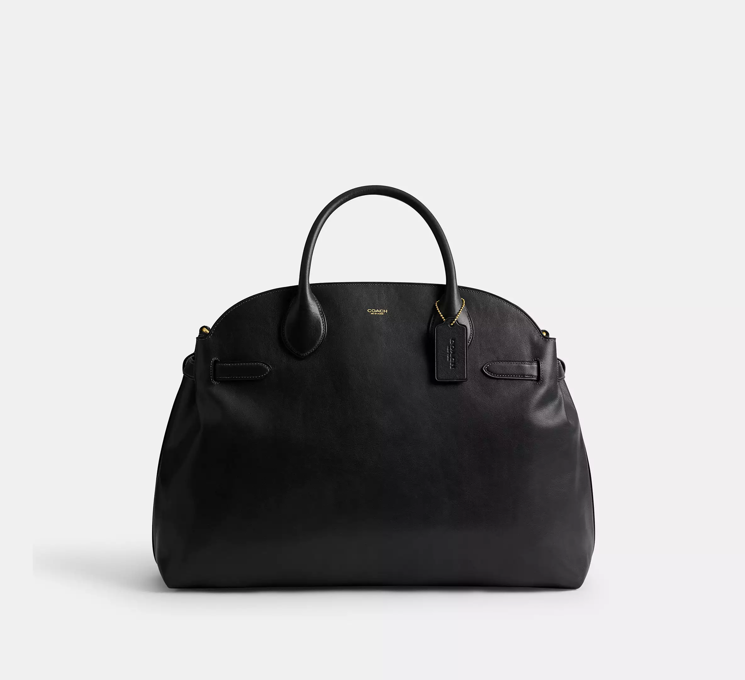 カーフの質感とゴールドの留め具が大人の上品さを出してくれてイイ…。 15インチのMacBookも入るサイズ感で仕事も休日もどちらもこなせる。